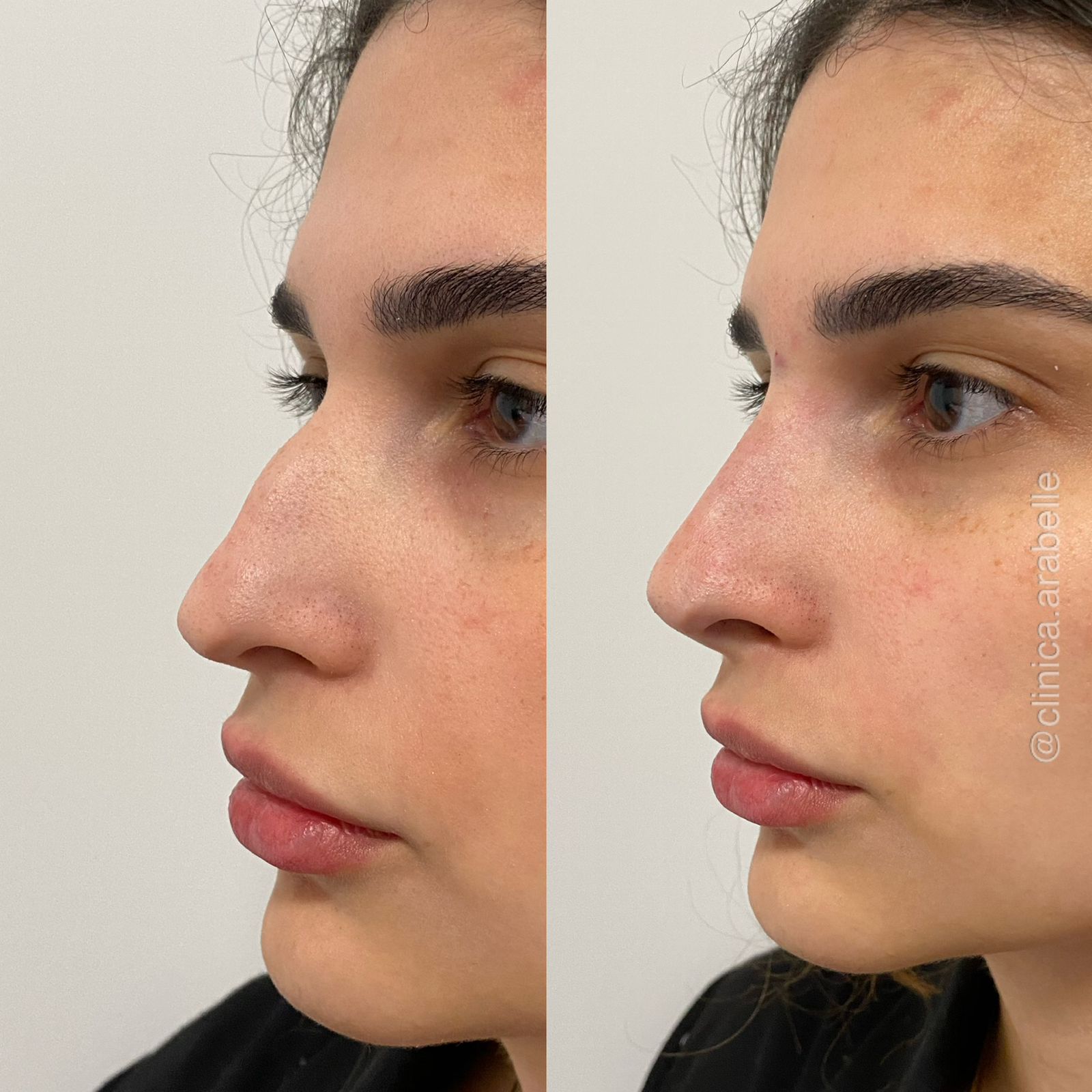 O procedimento que realizamos aqui na clínica Arabelle é a Rinomodelação com ácido hialurônico, que se trata de um tratamento minimamente invasivo, ou seja, nenhum corte ou sutura. Esse tratamento não é definitivo a durabilidade varia, a média é de 12-18 meses.