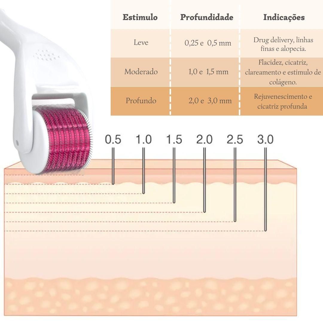 Não só o número de agulhas é relevante para o tratamento, mas também a profundidade delas. A profundidade das agulhas varia de 0,25mm a 3,0mm, para cada tratamento há uma indicação específica, e vale lembrar que, quanto maior a agressão, maior são os cuidados no pós-procedimento, e maior o tempo da recuperação.