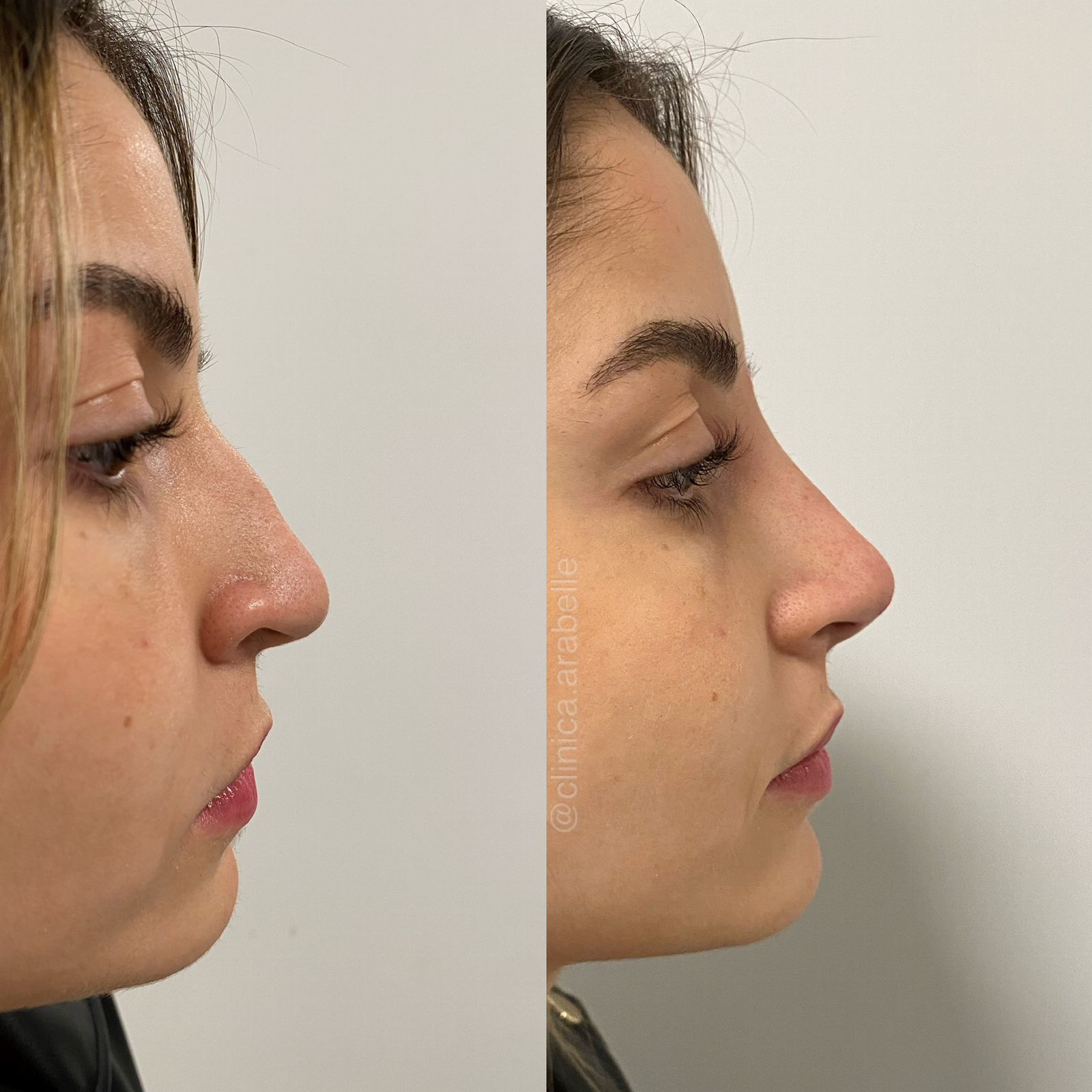 O procedimento que realizamos aqui na clínica Arabelle é a Rinomodelação com ácido hialurônico, que se trata de um tratamento minimamente invasivo, ou seja, nenhum corte ou sutura. Esse tratamento não é definitivo a durabilidade varia, a média é de 12-18 meses.